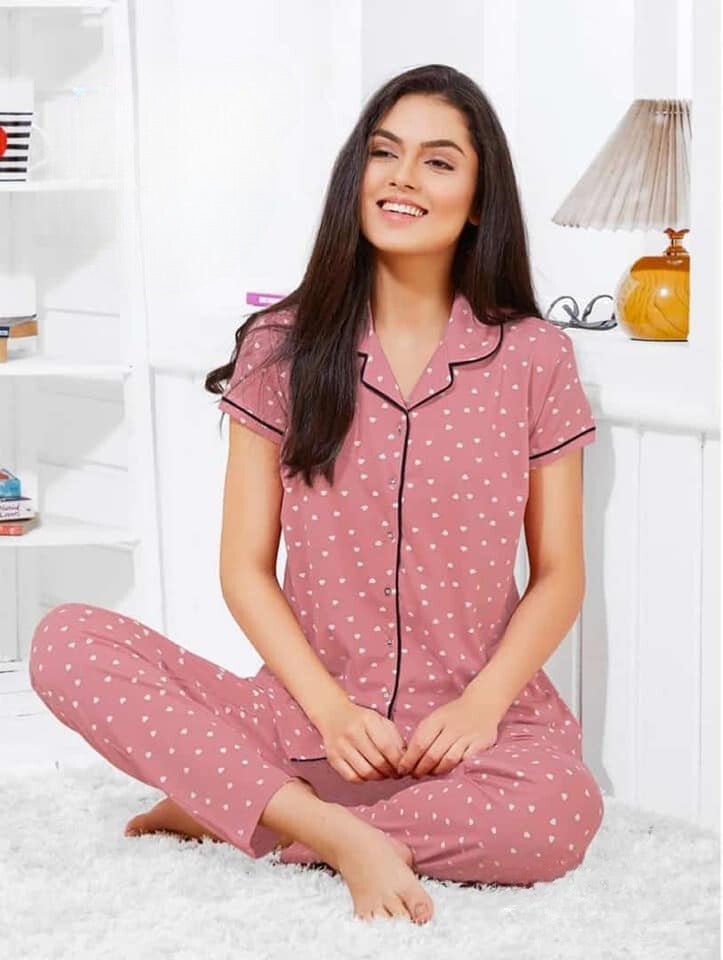 Premium soft and comfortable night wear dress in different designs like blue polka dot, doodle print, girl graphic & casual night.